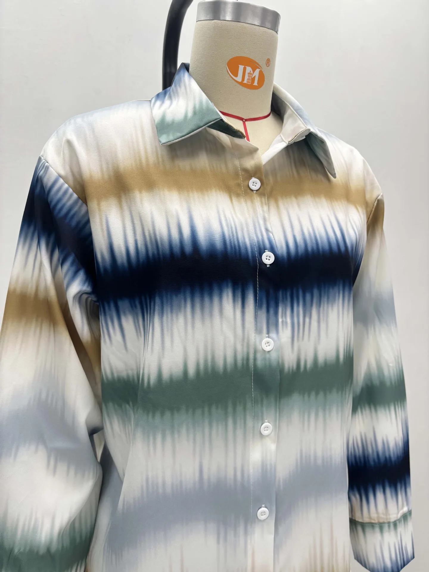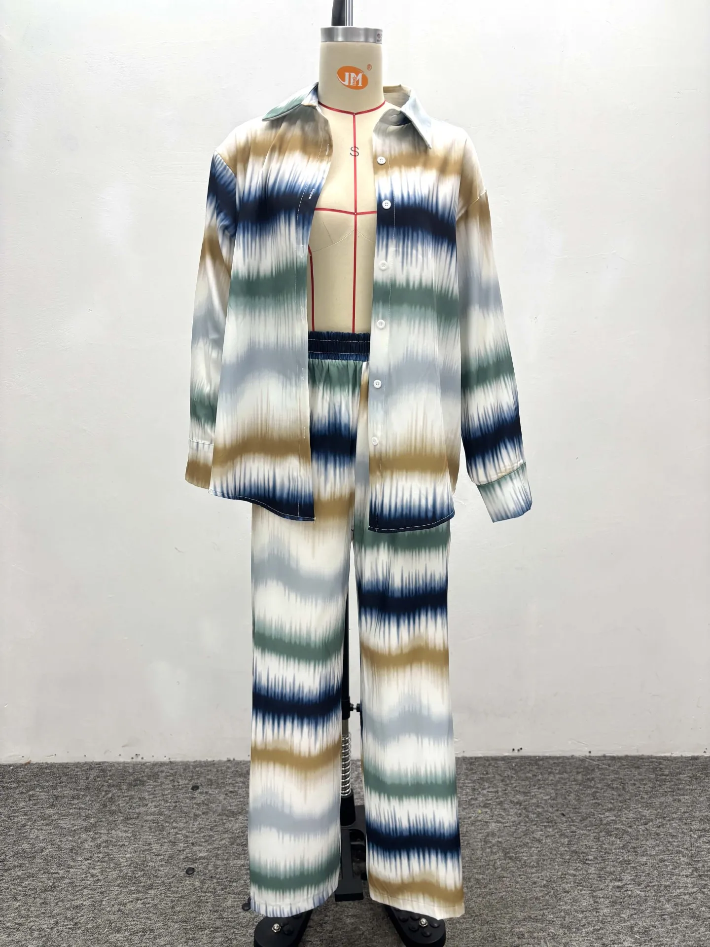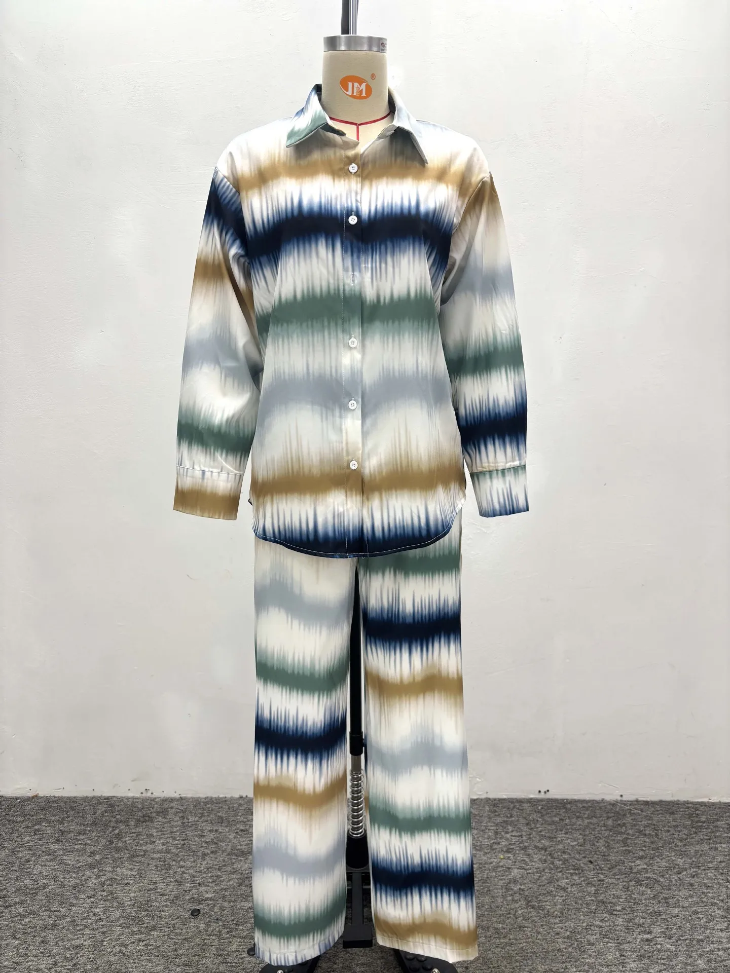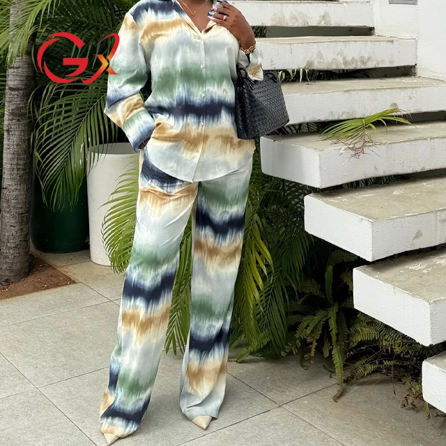 GX6194 Fashion Fall Women Clothing Boutique Street Wear Long Sleeve Stripped Shirt and Wide Leg Pant 2 Piece Set